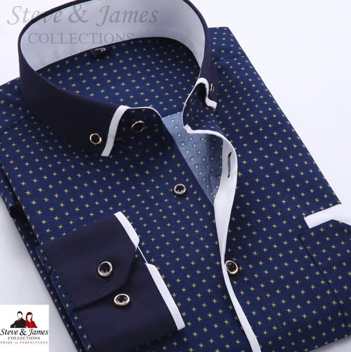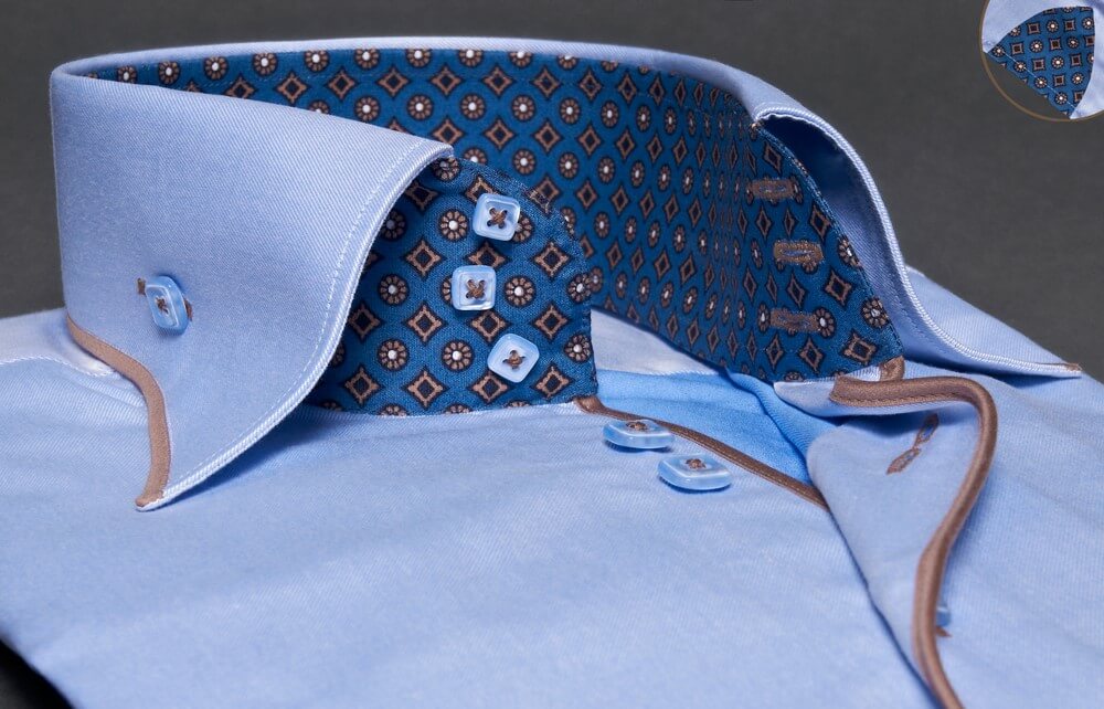 The double collar shirt is like the name would suggest, a shirt with two collars – or at least the appearance of two collars (like shown on the left). The double collar shines a hidden collar underneath the original, bringing you the design that will be primarily noticed in a shirt. Making you look attractive and different from your environment, it can be customisable to your choice and design. A single collar shirt (like shown below) is more formally worn and brings upon simplicity to the shirt. However, to make it look less simple you can add your own design, number of buttons and many more options to make it look vogue or keep it simple with a nice and classy collar.
